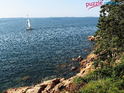 Puzzle Brzeg, Morze, Skalisty, Łódka