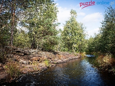 Brzeg, Obłoki, Rzeka, Skalisty, Las