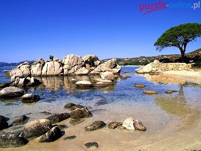 Puzzle Brzeg, Morze, Skały, Drzewo