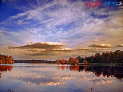 Puzzle Brzegi, Jezioro, Zalesione, Chmury