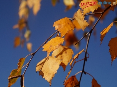 Puzzle Brzoza, Jesienne, Liście, Niebo
