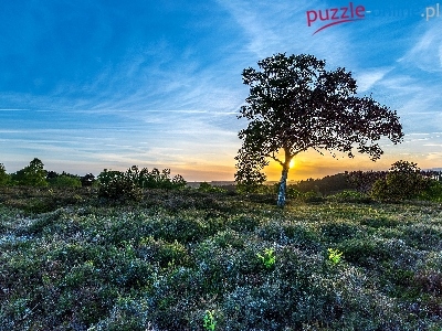 Puzzle Brzoza, Wzgórza, Drzewo, Promienie słońca