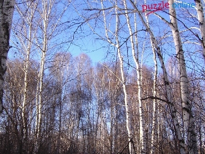 Puzzle Brzozy, Las, Drzewa, Niebo