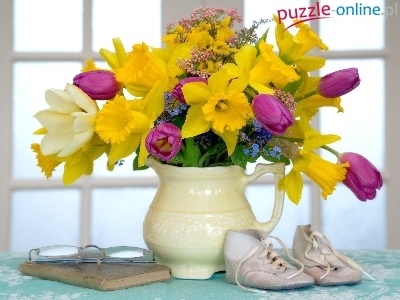 Puzzle Buciki, Tulipany, Żonkile, Okulary