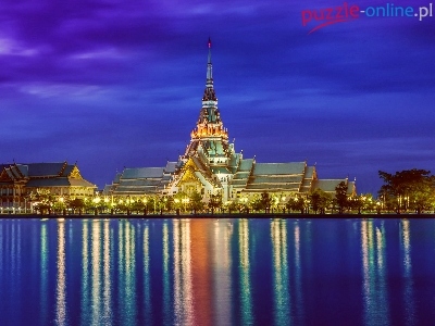 Świątynia, Odbicie, Tajlandia, Buddyjska, Światła