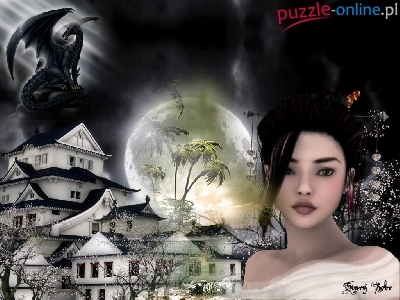Puzzle Budowle, Dziewczyna, Japońskie, Smok
