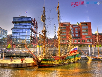 Puzzle Budynki, Statek, Żaglowy, Port