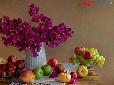 Bugenwilla, Dekoracja, Winogrona, Kompozycja, Kwiaty, Jabłka