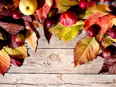 Buk, Jesienne, Deska, Kompozycja, Liście, Jabłka