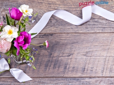 Bukiecik, Dekoracja, Kwiaty, Wazonik, Wstążka
