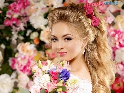 Puzzle Bukiet, Kobieta, Blondynka, Kwiaty