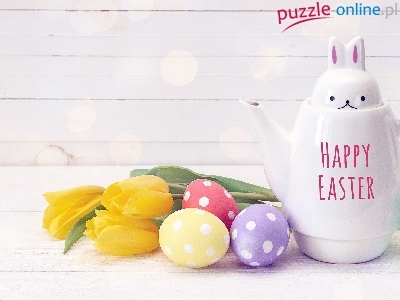 Czajniczek, Bukiet, Tulipany, Pisanki, Wielkanoc, Zajączek, Żółte