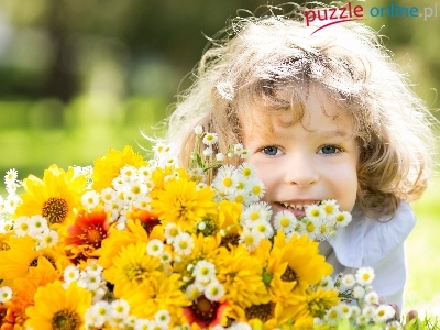 Puzzle Bukiet, Radosna, Dziewczynka, Kwiatów