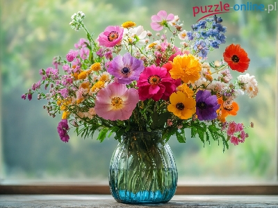 Kwiaty, Bukiet, Kolorowy, Okno, Wazon