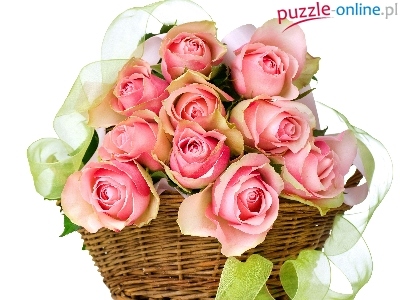 Puzzle Bukiet, Kwiaty, Koszyk, Róże