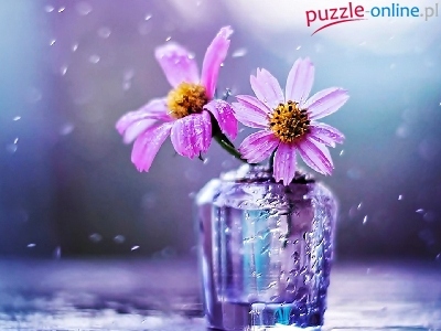 Bukiet, Krople, Fioletowe, Kwiaty, Waza