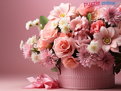 Kokarda, Różne, Kwiaty, Bukiet, Różowe tło, Donica
