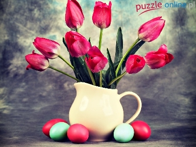 Bukiet, Dzbanek, Wielkanoc, Pisanki, Tulipany