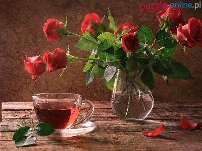 Puzzle Róż, Bukiet, Herbata