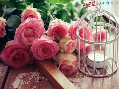 Bukiet, Dekoracja, Różowe, Róże, Świeca