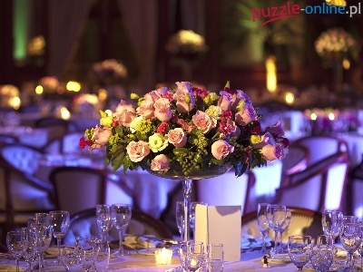 Puzzle Bukiet, Różowe, Róże, Kieliszki