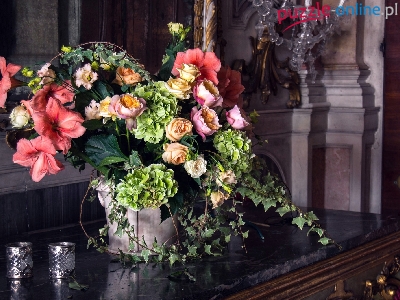 Róże, Bukiet, Blat, Amarylis, Kwiaty, Hortensje, Wazon