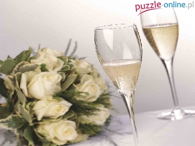 Puzzle Szampan, bukiet kwiatów