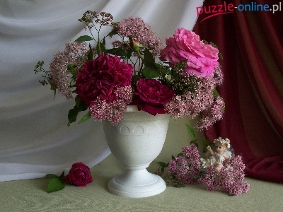 Puzzle Bukiet, Biały, Wazon, Kwiatów
