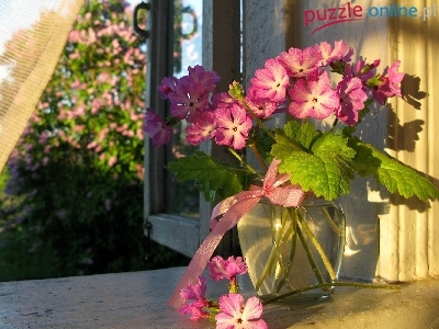 Bukiet, Kwiatów, Okno, Wazon, Różowych