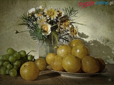 Puzzle Bukiet, Śliwki, Winogrona, Kwiatów