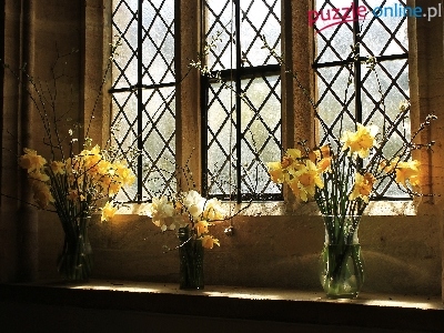 Bukiety, Żonkile, Wnętrze, Okno, Kwiatów