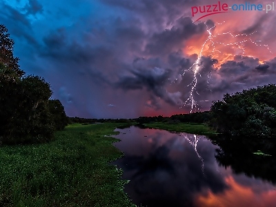 Puzzle Burza, Rzeka, Chmury, Błyskawice