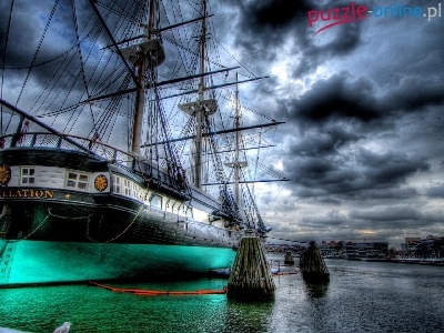Puzzle Burzowe, HDR, Żaglowiec, Niebo