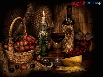 Winogrona, Butelka, Ser, Wino, Koszyk, Åšwieca, Kieliszek