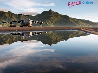 Góry, C-17, Odbicie, Boeing, Globemaster III, Woda