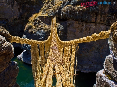 Rzeka, Peru, Qeswachaka Rope Bridge, Skały, Most linowy, Prowincja Canas, Apurimac River