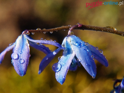 Cebulica Syberyjska, Wody, Kwiaty, Niebieskie, Krople