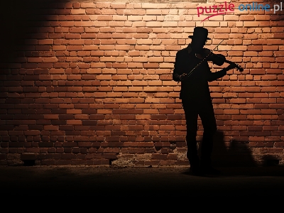 Mężczyzna, Cegły, Skrzypce, Grafika, Ściana