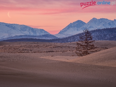 Chara Sands, Góry, Drzewo, Rosja, Piaski, Pustynia, Kraj Zabajkalski