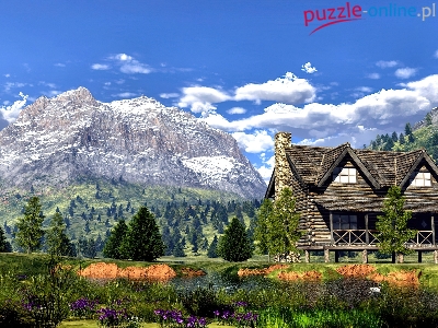 Puzzle Chata, Góry, Drewniana, Świerki