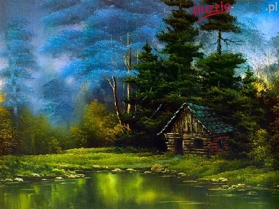 Puzzle Jezioro, Chata, Drzewa