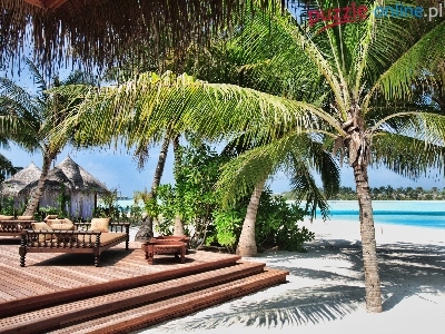 Chatki, Plaża, Drewniany, Podest, Palmy