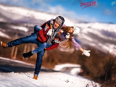 Chłopak, Góry, Radość, Krajobraz, Droga, Dziewczyna
