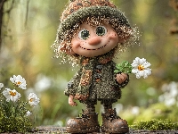 Kwiaty, Chłopiec, Białe, Grafika AI