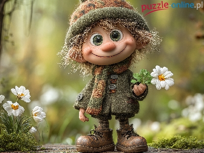 Puzzle Kwiaty, Chłopiec, Białe, Grafika AI