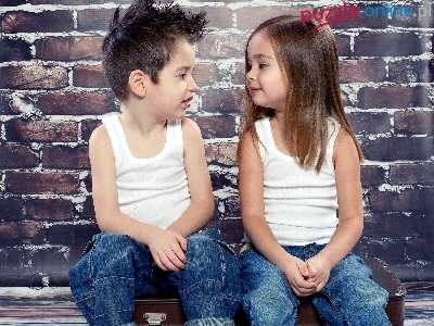 Puzzle Chłopiec, Siedząca, Dziewczynka, Mur