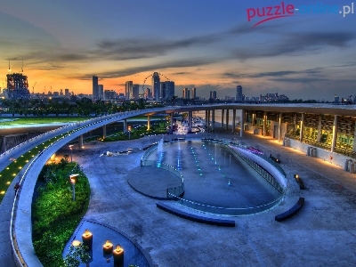 Chmur, Miasto, Fontanna, Grafika, Drapacze, Most