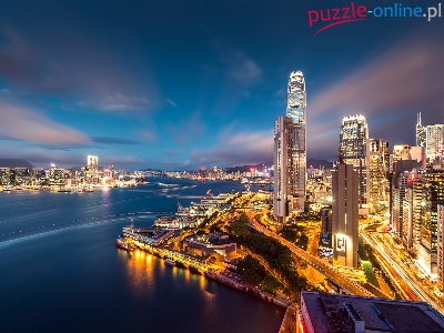 Puzzle Chmur, Hong Kong, Drapacze, Wieczór