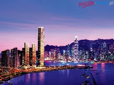 Drapacze Chmur, Jachty, Hong Hong, Nocą, Port