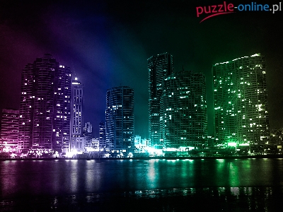 Puzzle Światła, Drapacze, Chmur, Woda